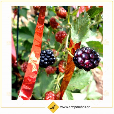 - A fita espanta pássaros reflete a luz solar que funciona como um espantalho, enviando aos pássaros um sinal de perigo para abandonarem o local
